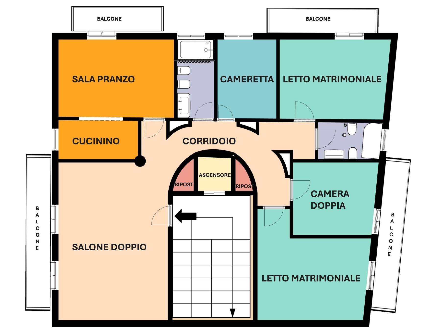 Secondo piano con ascensore pentavani accessoriato
