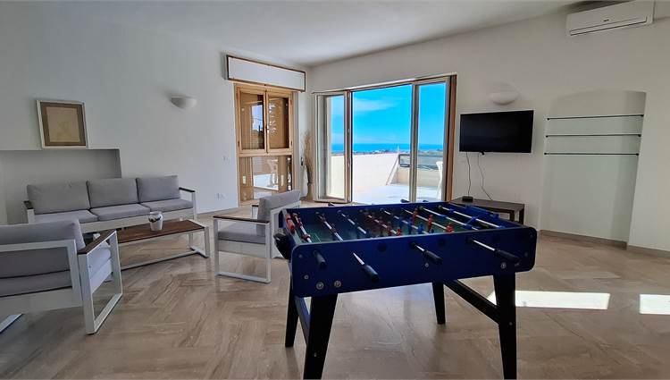 Gli ambienti interni sono ampi, luminosi e curati nei dettagli, con finiture in pietra che richiamano il fascino mediterraneo e grandi zone living pensate per la convivialità. Le cucine attrezzate, le sei camere da letto e la dependance ristrutturata completano una soluzione abitativa funzionale e accogliente.